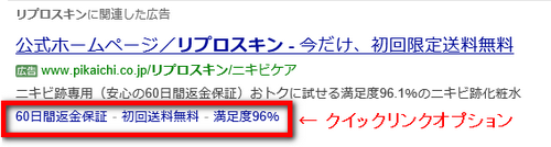 通常の広告文の下にテキストリンクを追加出来る機能です。