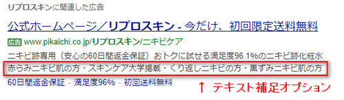 テキスト補足オプションに入れる内容は広告文とは被らない文言にしましょう