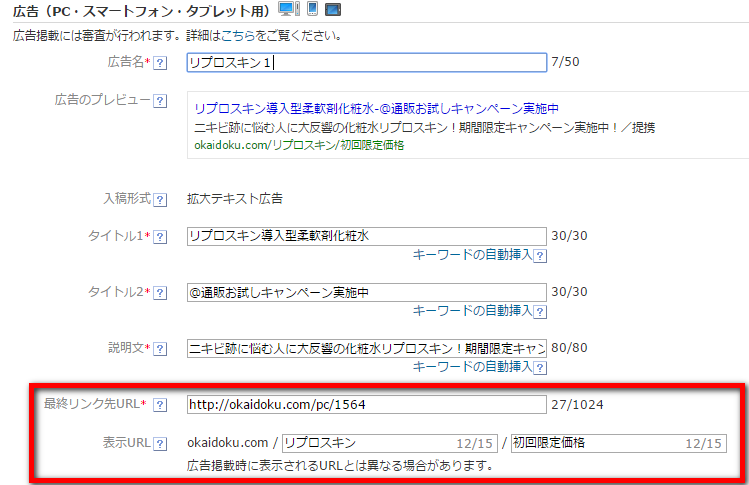 ■パスを表示(表示URLお尻部分を広告文の一部として入力可能)