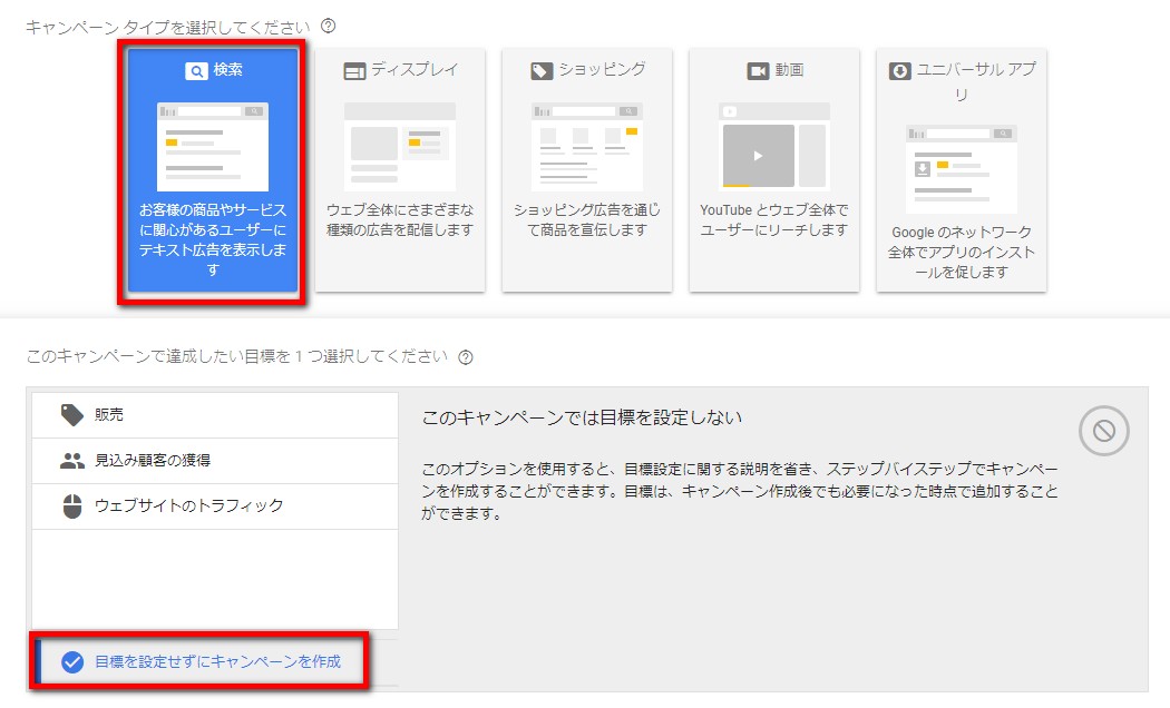 キャンペーンを作成する際に選びます。