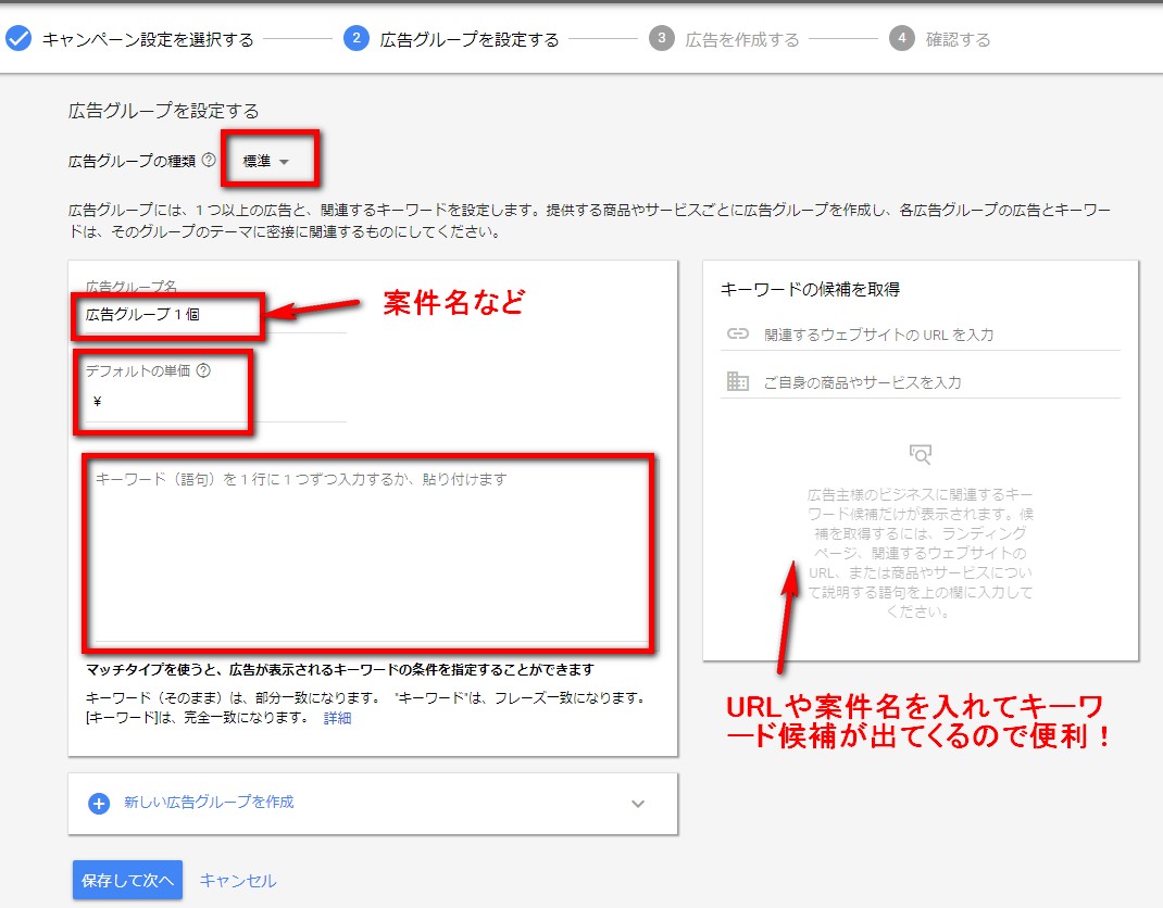 広告グループ名は案件名と報酬額にしてください。