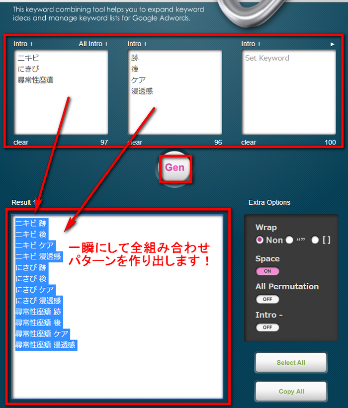 ・思いつく限りの関連キーワードを作りだします。