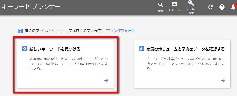 ②ツールを使ってキーワードを拡大