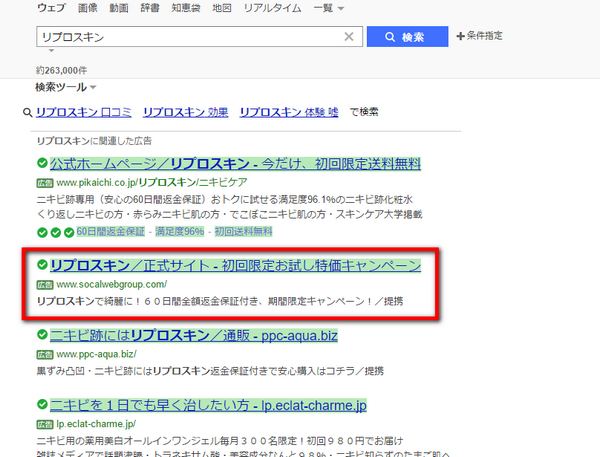 4位に表示する理由は1位2位よりも単価が低くPCでの検索結果の場合は