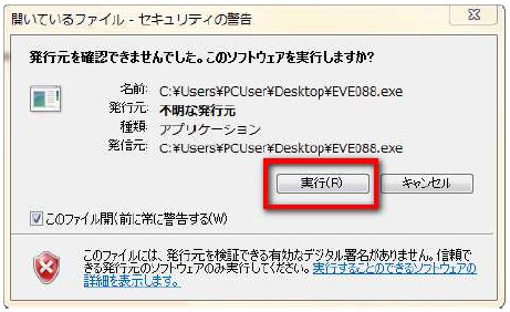 確認のウィンドウが開きます。『実行』をクリックしてください。