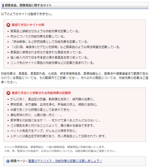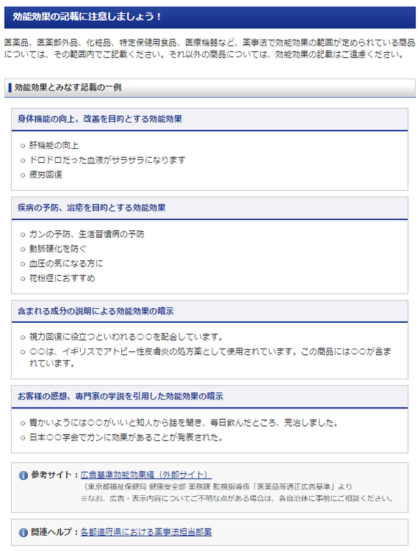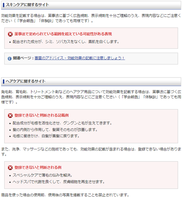 → <商材別に学ぶ>薬機法関連の掲載できない表現例
