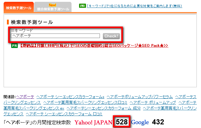 検索窓に商品名を入れてCheck! ⇒ 月間推定検索数が500超えてればOK